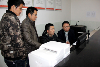 雷越毅一行在黄茅洲镇黄茅洲村查看镇村政务系统运行情况