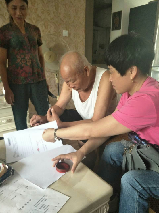 图为政务服务中心工作人员到长沙罗先生家中面签二手房交易合同